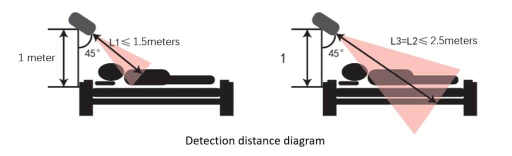 For optimal radar detection accuracy, it is recommended to install the device above the bedhead at a 45° downward tilt!