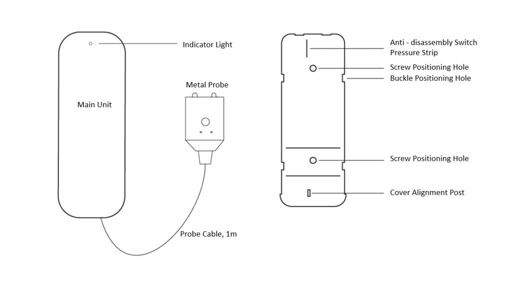 This product adopts NB-IoT(Lora, ZETA, Wifi, Bluetooth, 4G, Zigbee, and RF communication can also be selected) communication technology and a split-type design. The probe is fully enclosed, waterproof and moisture-proof, small and flexible. It can be installed in relatively narrow and enclosed places with harsh environments. The control main unit can be placed in an open area, which is convenient for personnel operation and beneficial to signal transmission.